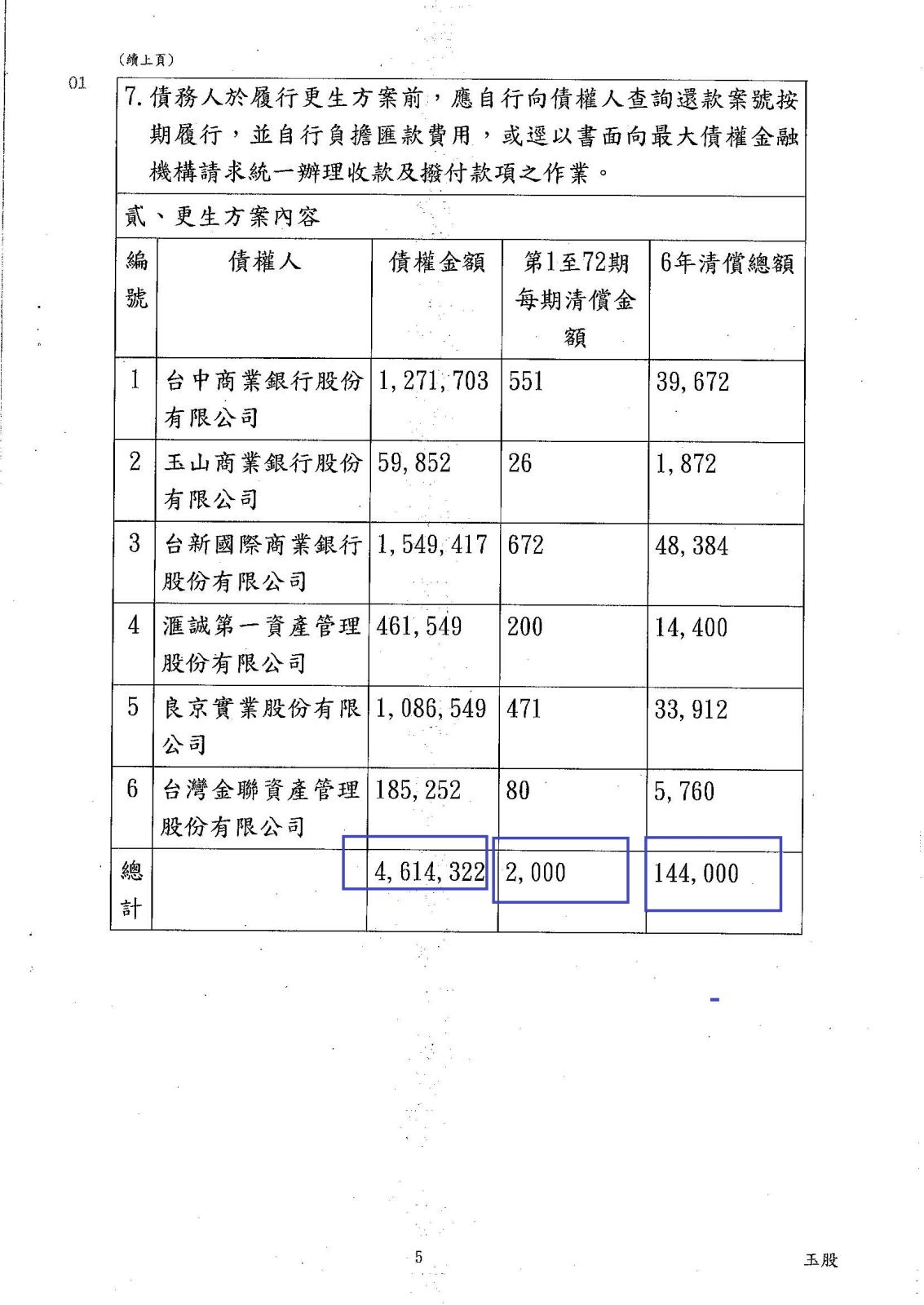 更生方案: