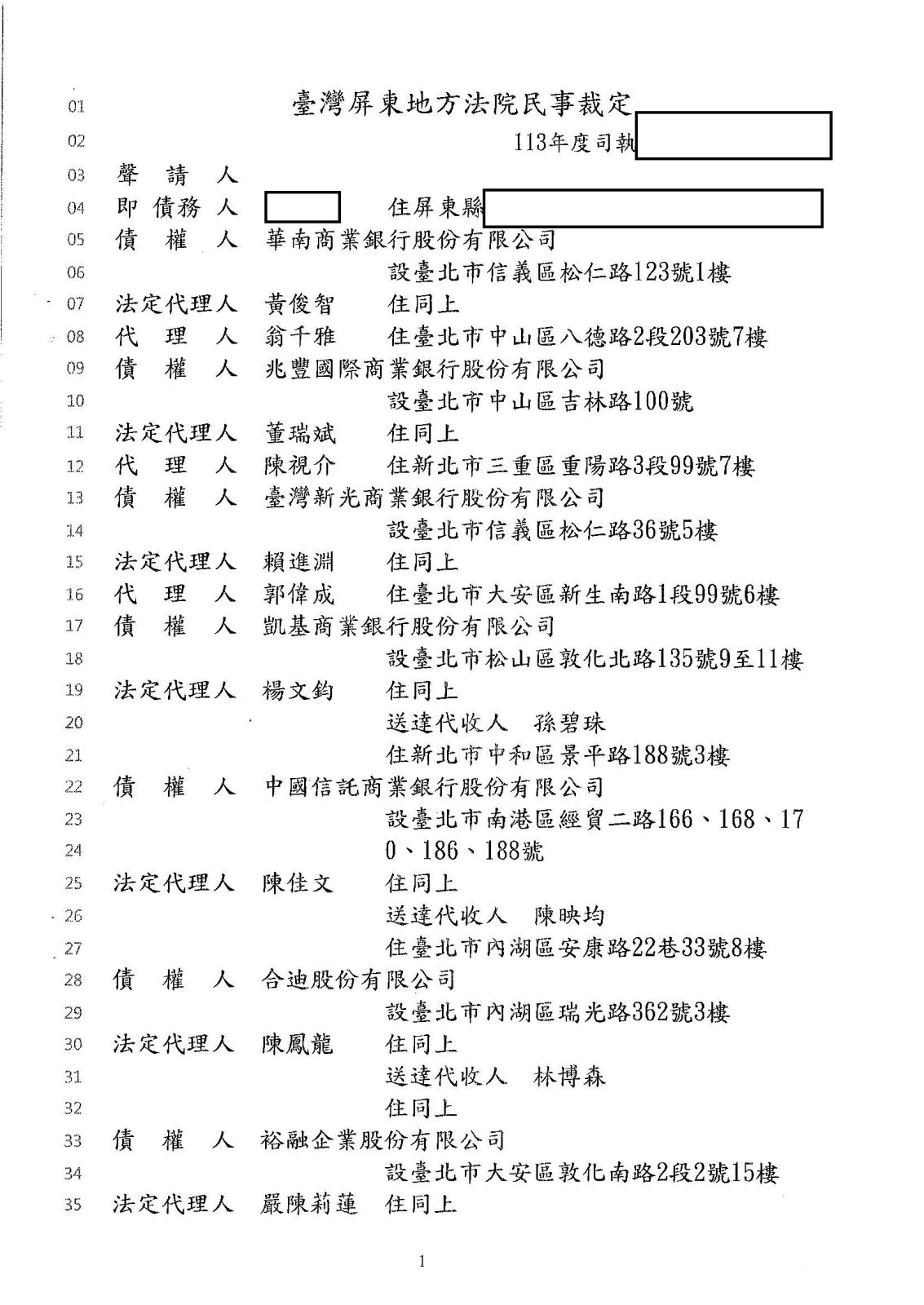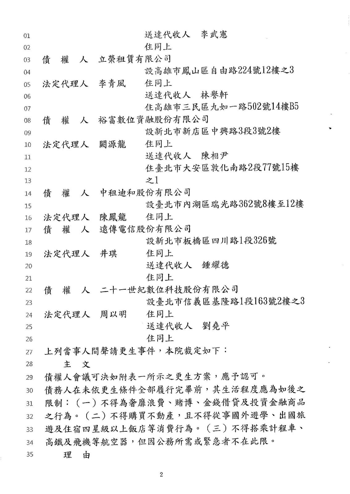 更生裁定日期:114年2月