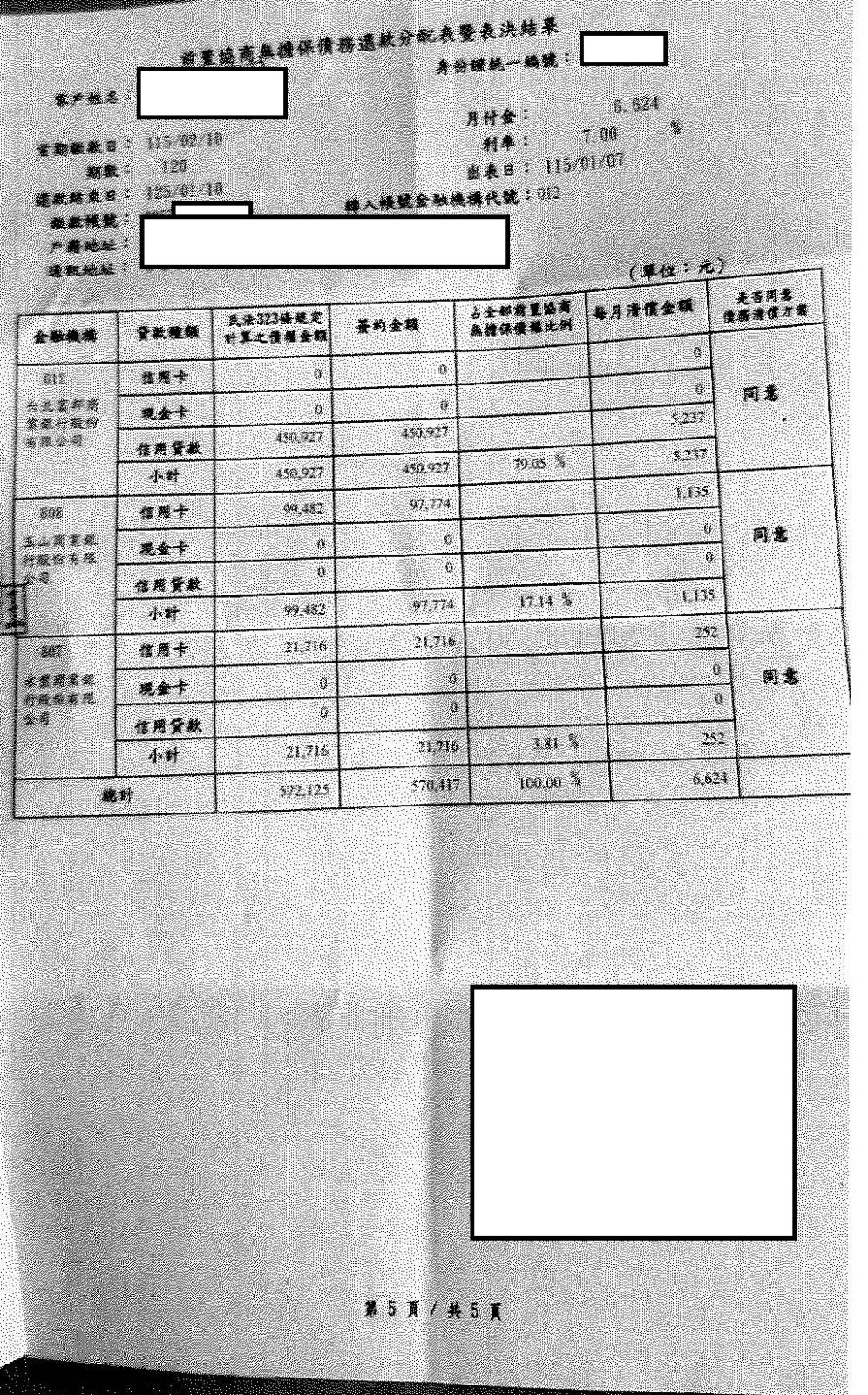 【前置協商案例】- 李先生債務約136萬,5間銀行每月繳納銀行最低應繳額約4萬3,整合協商後每月還款1萬3600元。