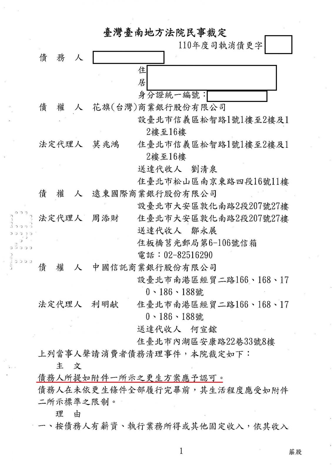 更生裁定日期:110年06月22日