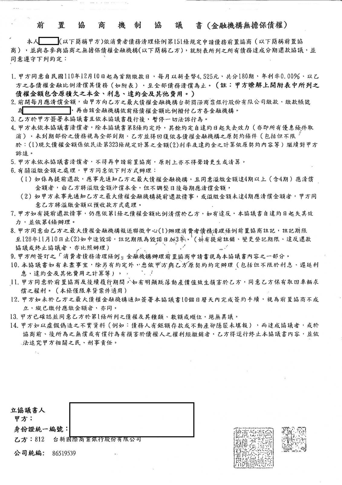 後以前置協商方式整合債務並減免12年來利息,