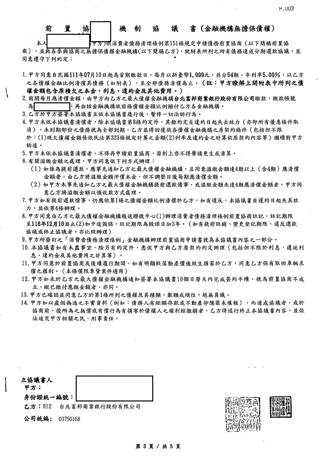 後以前置協商方式整合債務並減免12年來利息,