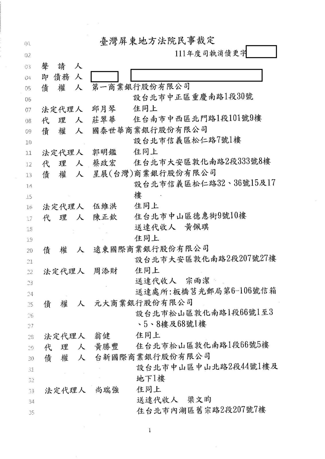 【債務更生案例】 劉先生負債總額1035萬8824元,法院更生成立後每月還款1800元,6年還款總額7萬2,清償比例:1.25 %
