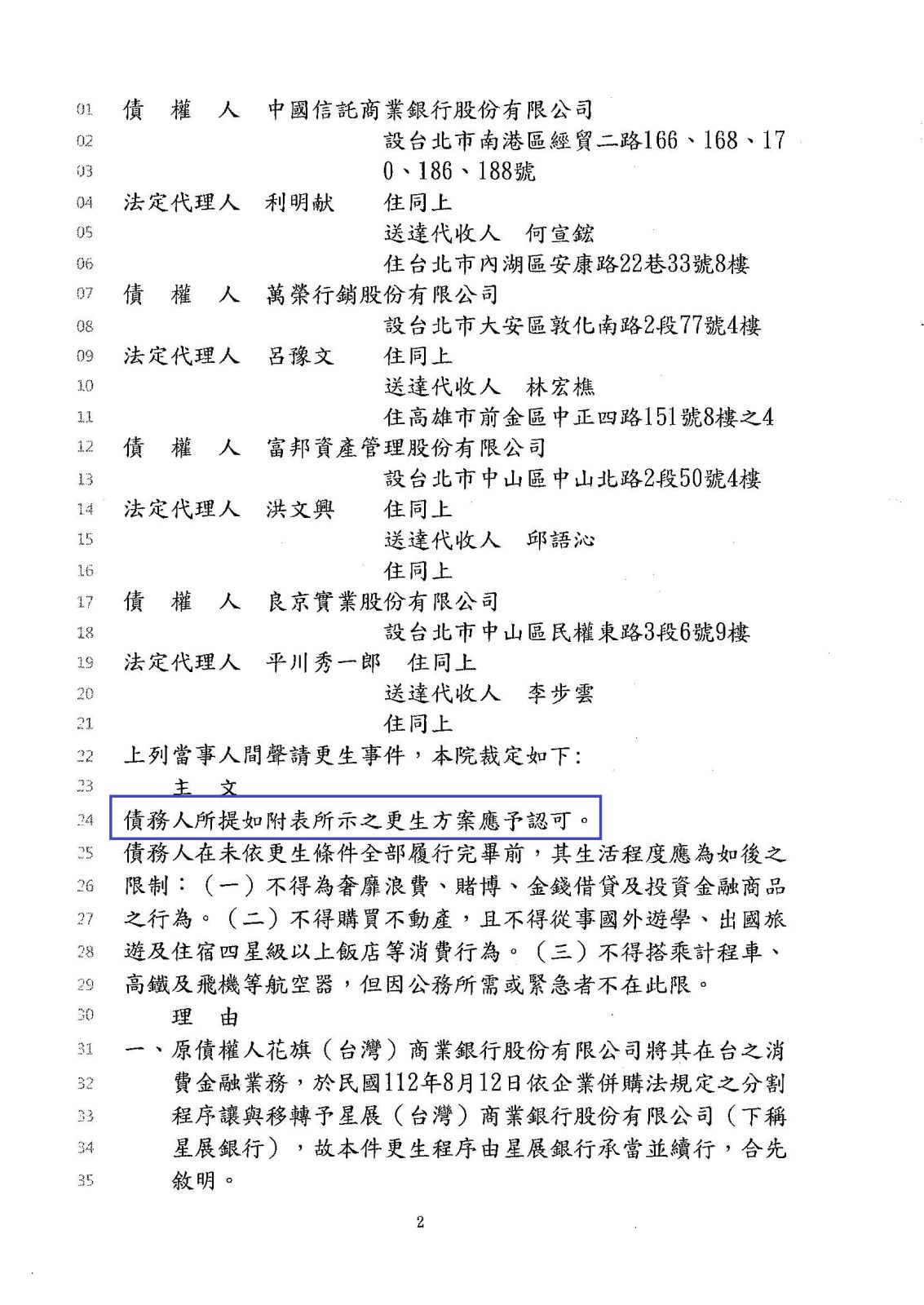萬9696,清償比例約2.33%,餘債務金額免除。