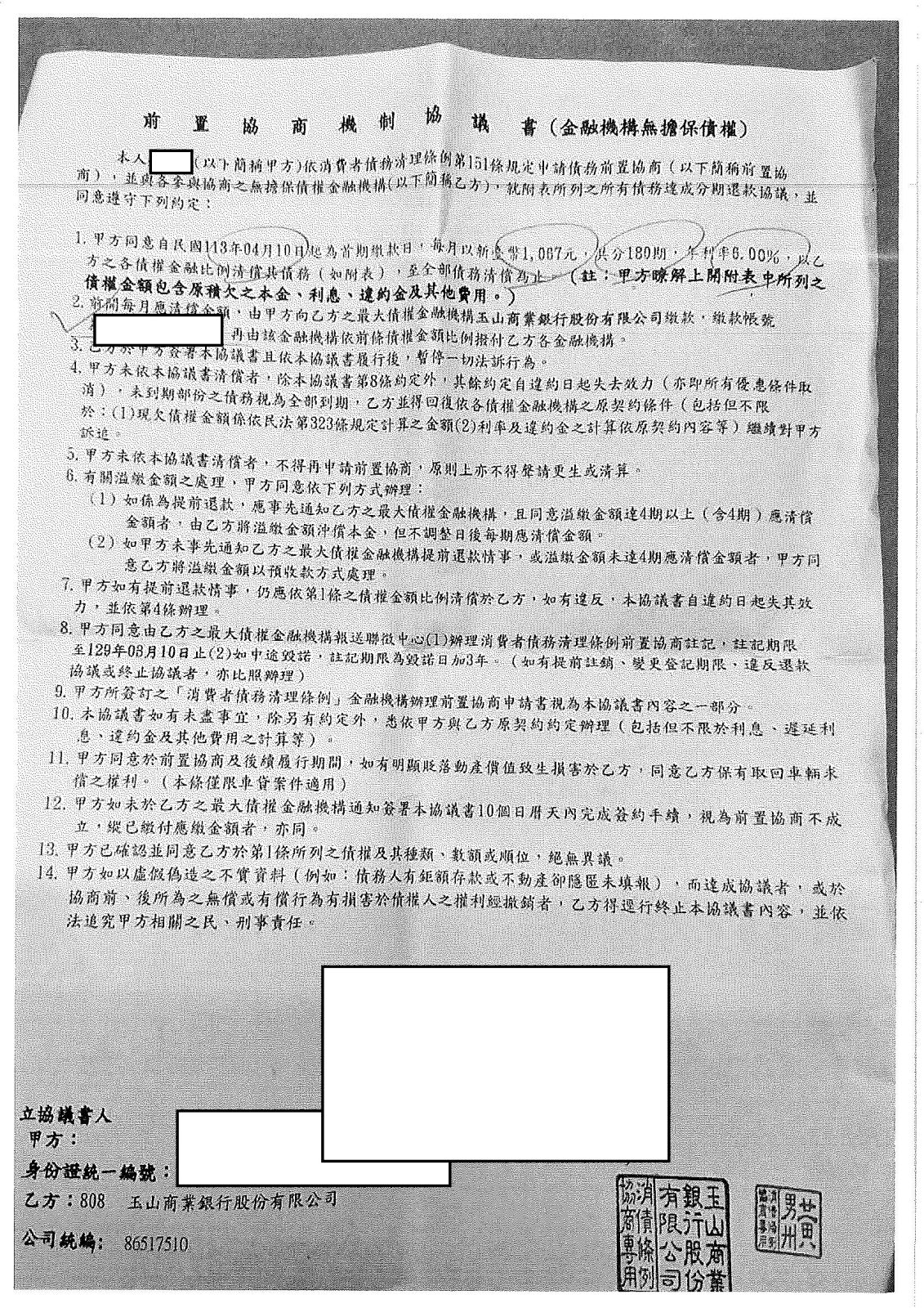 後以前置協商方式整合債務並減免9年來利息,