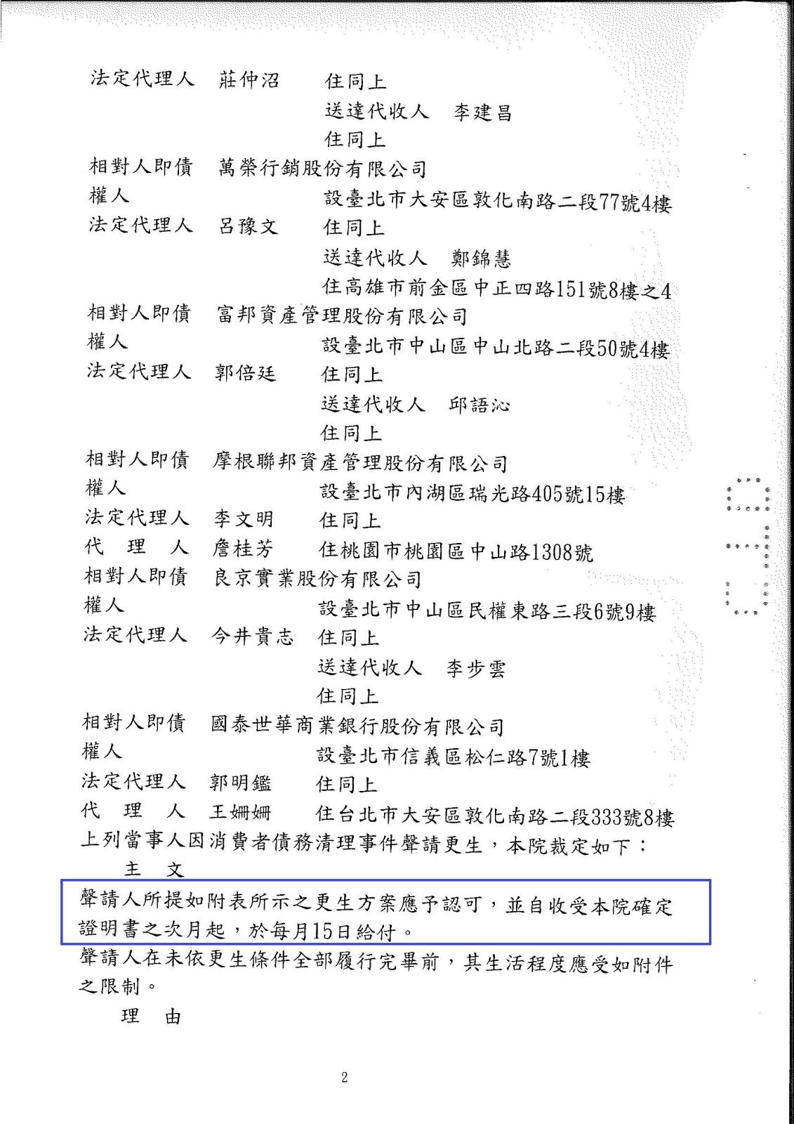 更生裁定日期:114年4月