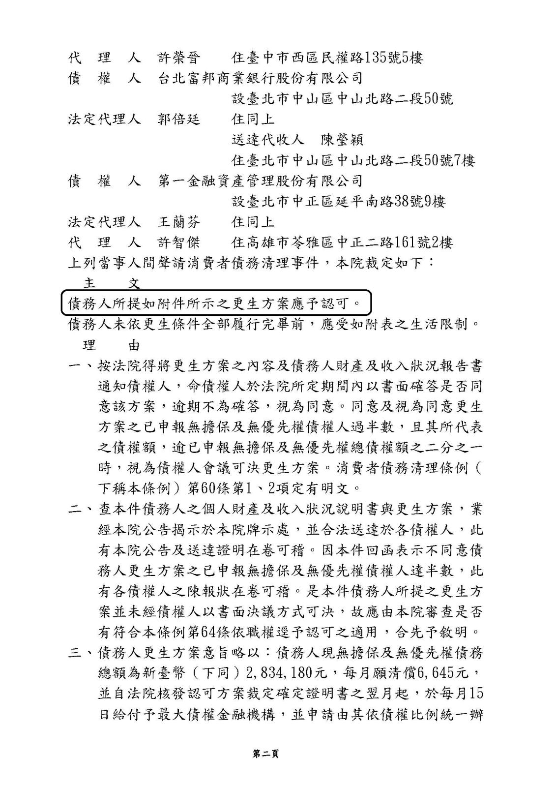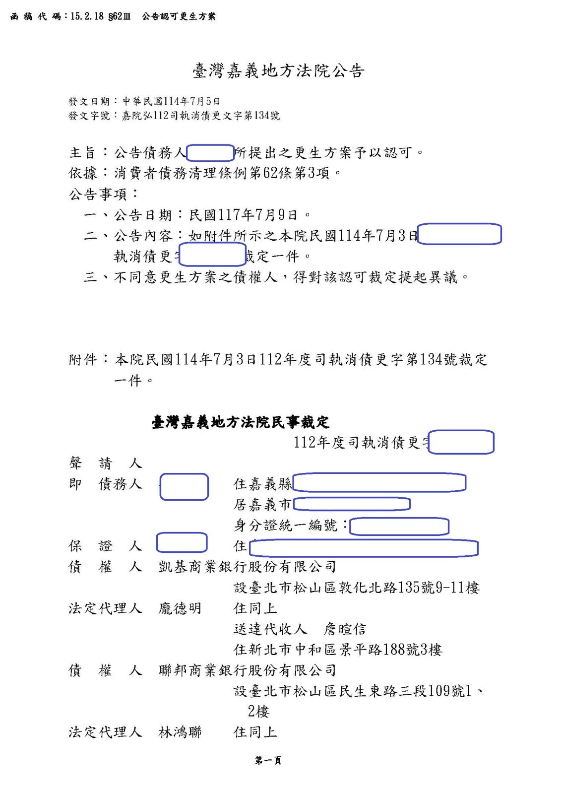 【債務更生案例】 劉先生負債總額1035萬8824元,法院更生成立後每月還款1800元,6年還款總額7萬2,清償比例:1.25 %