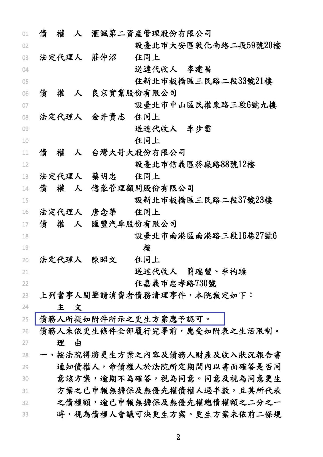 更生裁定日期:114年8月