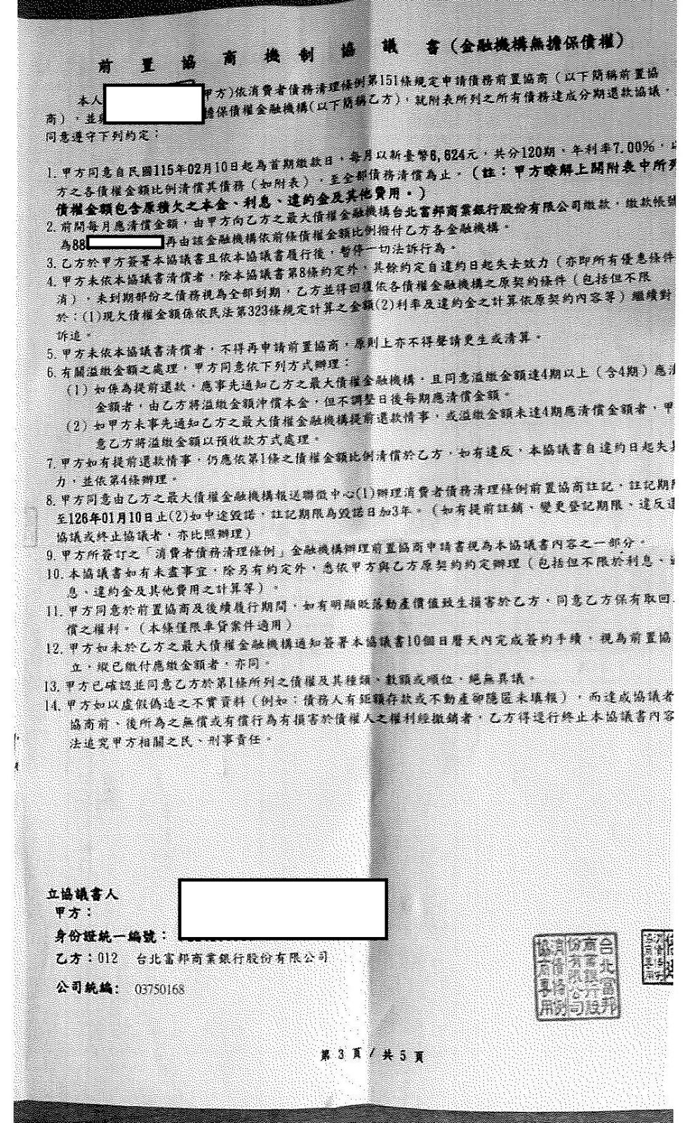 以前置協商方式整合債務並固定利息,