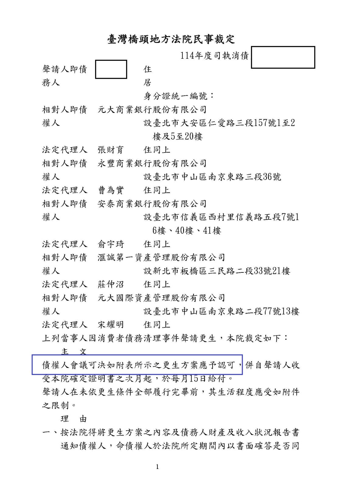 更生裁定日期:115年03月